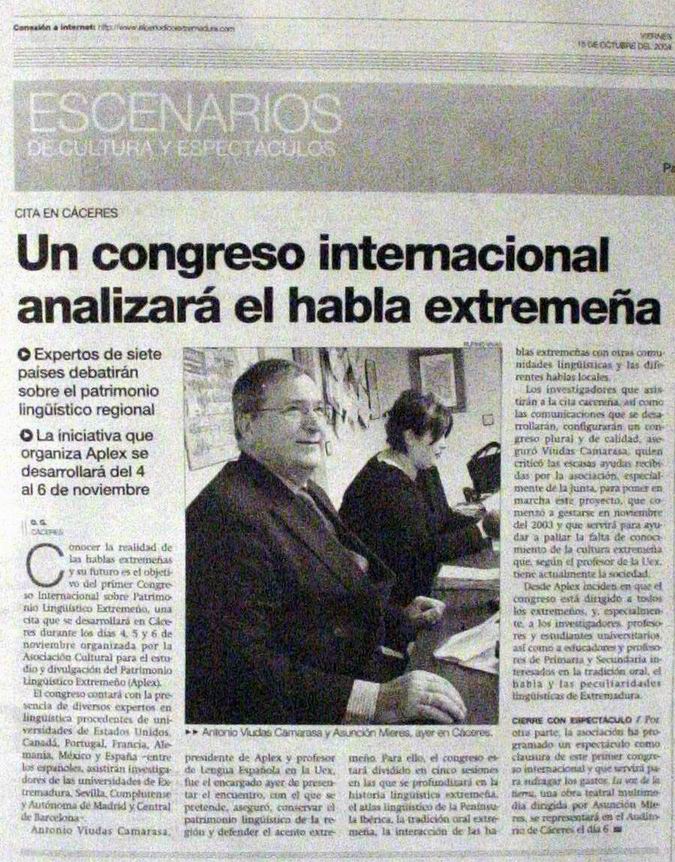 Presentación del Congreso Internacional Aplex 2004 sobre patrimonio lingüístico extremeño